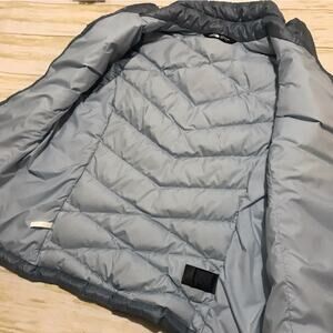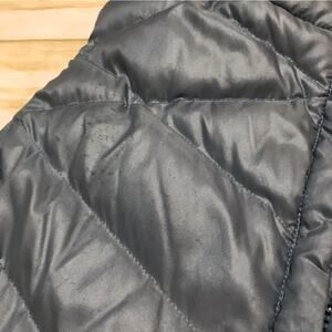 This vest is in great condition! Some dark water like spots throughout as pictured. Light blue color perfect for winter and spring. 660 down fill quilted puffer vest. Zipper closure with zipper pockets. Women’s size medium. 4.15.23 MM