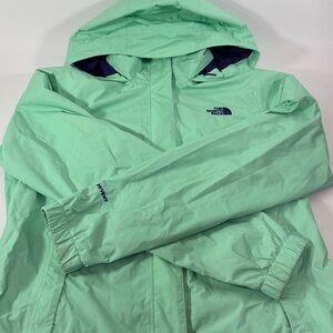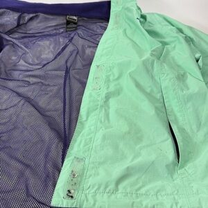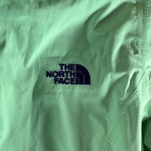 Light green windbreaker by The North Face. Ideal for outdoor activities.