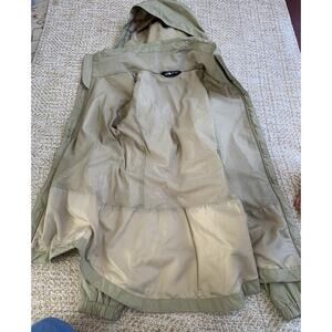 The North Face Lightweight Parka zip sm rain jacket is a versatile and stylish women's jacket suitable for various occasions such as travel, casual wear, and workwear. Made with a durable nylon outer shell and lined with polyester, this mid-length parka is designed to keep you comfortable in all seasons. The beige color and solid pattern add a touch of elegance, while the zip closure and lightweight feature make it practical and easy to wear. With the trusted brand of The North Face and a size S, this jacket is a must-have for any wardrobe.