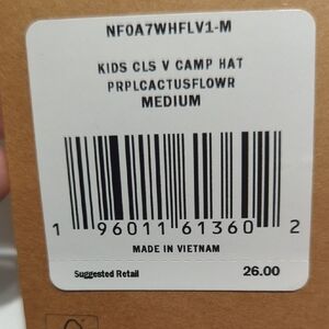Bold magenta cap with black mesh panels. Features The North Face logo embroidery. This is a brand new kids medium cactus flower hat original price $26 North face brand so you know you cannot go wrong brand new with tags very very bright purple and black again it is a kids/infant size medium please look at tags with the identification of the size sold as is brand new with tags thanks so much I appreciate it