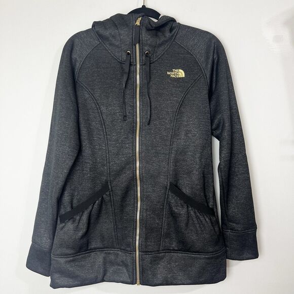 The North Face Mattea Parka Jacket Hoodie Full Zip Dark Gray Gold Womens M