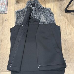 Stay stylish and warm with this chic women's vest. Featuring a sleek black body and a cozy gray collar, this piece is perfect for layering. Ideal for any casual outing.