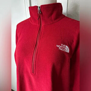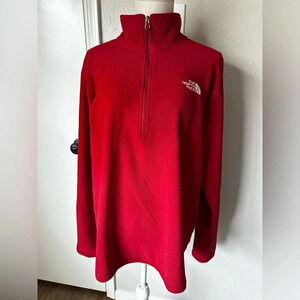 The North Face Men's 1/4 Zip Red Textured Pullover Fleece Lined Size L