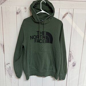 The North Face Half Dome hoodie, men’s pullover sweatshirt, green TNF hoodie, fleece kangaroo pocket, soft brushed interior #TheNorthFace #Hoodie #MensLarge #Green #EUC