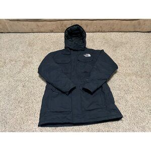 Designed for cold weather, this North Face Arctic Parka offers durable insulation and waterproof protection. Its hooded design and mid-thigh length provide coverage and warmth, making it a reliable choice for outdoor activities or urban commutes during winter months. Constructed for functionality and style.