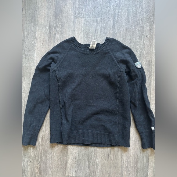 Sleek black crewneck sweater. Ideal for layering. Timeless design by The North Face.