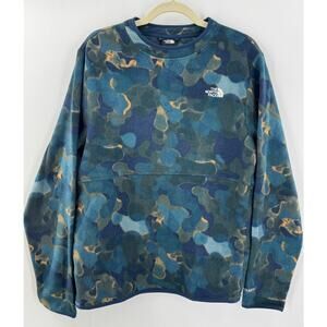 The North Face Mens Blue Green Camo Pullover Fleece Sweatshirt Baselayer M