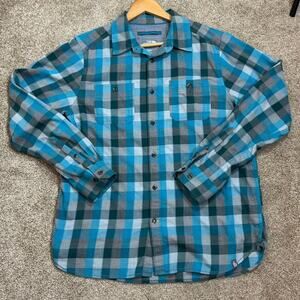 The North Face Men’s Blue Long Button Front Collared Shirt Plaid Outdoors Large