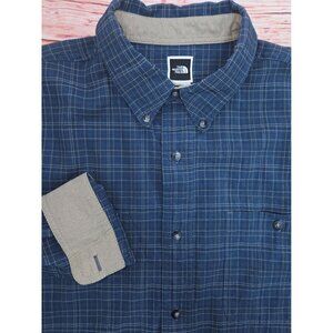 The North Face Mens Button-Up Plaid Shirt Large Blue - Roll-Tab Sleeves