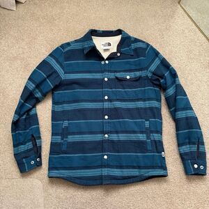 The North Face Men’s Campshire Shirt Sherpa Fleece Lined Jacket Blue Small EUC