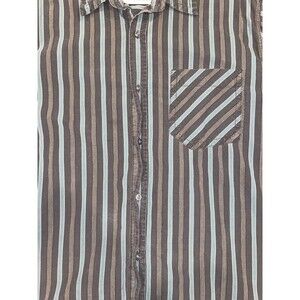 The North Face Mens Cotton LS Button Down Brown Teal Striped Casual Shirt XL