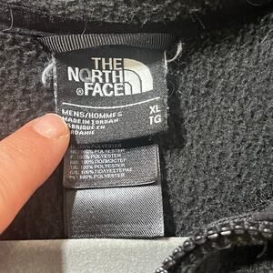 This is a pre-owned North Face fleece jacket for men in size XL. It's in great condition and perfect for staying warm during outdoor activities or everyday wear. The jacket features a full zip front, two hand pockets, and the North Face logo embroidered on the chest. Don't miss out on this great deal!