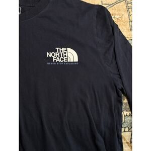 The North Face Men’s Graphic Long Sleeve T-Shirt Navy Blue Logo Spell out Size M
