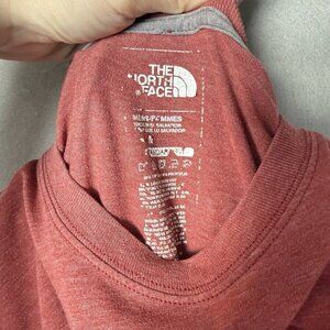 The North Face t-shirt, red graphic tee, men’s size M, cotton blend tee, outdoor brand shirt, casual logo tee, streetwear top, hiking style shirt, everyday essential tee, adventure wear, North Face graphic shirt