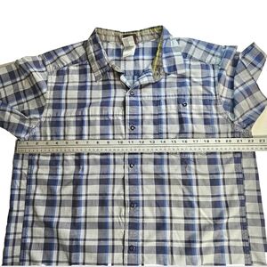 The North Face Men's Gray Blue Plaid Large Short Sleeve Casual Buttondown Shirt