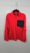 Vibrant scarlet fleece with a charcoal chest pocket. Half-zip style. Ideal for outdoor adventures.