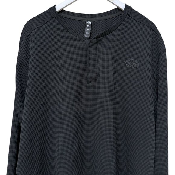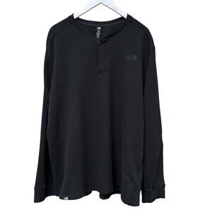 The North Face mens henley XXL black waffle knit long sleeve polyester casual layering logo