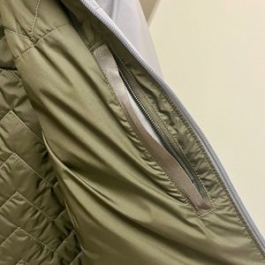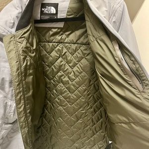 The North Face Mens quilted jacket. Size XL. Light gray in color with black collar. No rips, stains or issues.