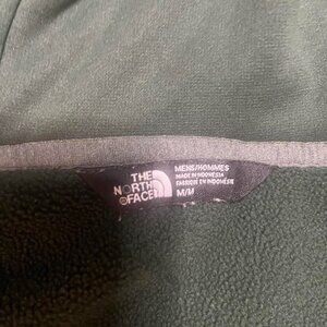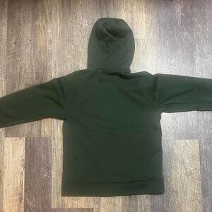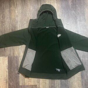 The North Face full-zip softshell hoodie in forest green. Size Medium (men’s) — unisex fit. Warm, durable, and water-resistant outer layer. Perfect for layering or wearing solo.