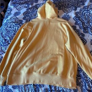Comfortable and stylish hoodie by The North Face. Features a light yellow color with a front pocket and hood. Ideal for casual wear.