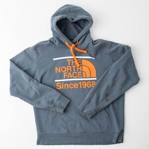 The North Face Men’s Hoodie Size Medium Blue Gray Since 1968 Logo Pullover Sweatshirt.