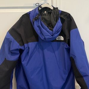 Durable and stylish performance jacket. Ideal for outdoor activities. Features a bold blue and black color scheme.