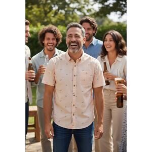 The North Face Men's Short Sleeve Shirt Button Down Fish All Over Design Sz XXL
