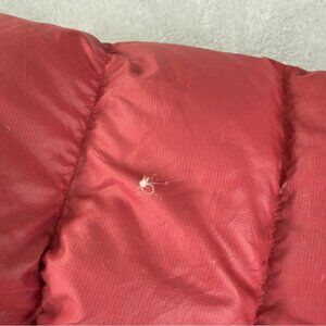 The North Face Men's Size Small 700 Down Fill Nuptse Puffer Jacket Winter in good pre owned condition as shown in the photos with the only flaw being hole on the back of the right arm as well as staining there and the front has a hole that has been patched. Got a tiny hole in the front left arm as well shown in the photos.
