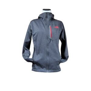 The North Face Men’s Small Gray Hooded Softshell Jacket | Red Accents | Full Zip
