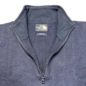 The North Face Mens Sweater Wool Blend Quarter Zip Pullover Navy Blue Large