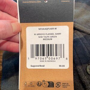 The North Face Men's Sz M Arroyo Flannel Shirt New Taupe Green Plaid Pockets