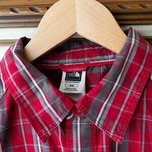The North Face Men’s Sz Medium Red Gray Plaid Long Sleeve Button-Up Shirt Hiking