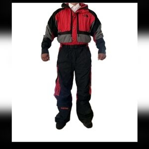 The North Face Mens Vintage Red And Black Steep Tech One Piece Snow Suit M