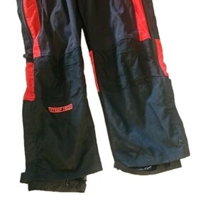 Experience the thrill of the slopes in style with this vintage ski snow suit from The North Face. This extreme gear suit features a striking red and black color scheme that will make you stand out on the mountain. Made from durable nylon material, this suit is designed to withstand even the toughest weather conditions.