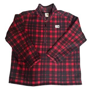 he North Face Men’s XXL Red Black Buffalo Plaid Quarter Zip Fleece Pullover