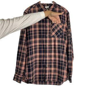 The North Face Men's Medium Plaid Button-Up Long Sleeve Shirt, Navy Blue & Pink