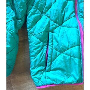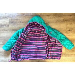 The North Face Moondoggy Green Pink Trim Reverisble Hooded Girl’s Jacket Size XL