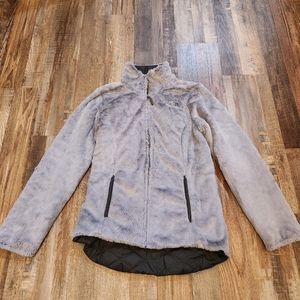 In excellent like-new condition. One side is water repellant, the other is super soft and fuzzy. Very warm and comfortable jacket.