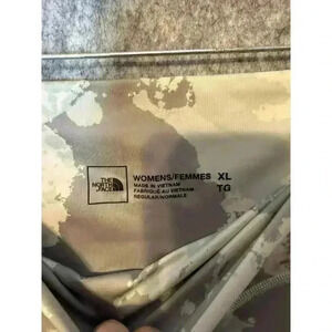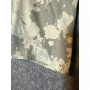 Green camo/splatter design. The North Face color is "Wrought Iron Surreal Sky"