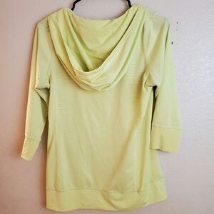 The North Face women's neon lime green yellow Reflective long sleeve Active Running Workout thermal pullover shirt. Has a hoodie. Lightweight.
