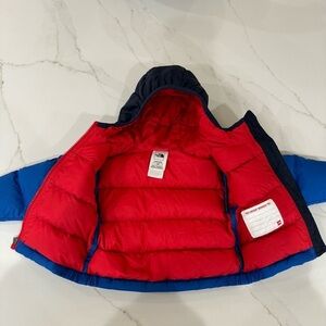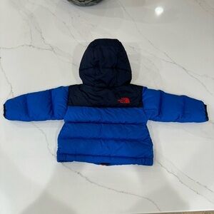 The North Face Nuptse Hooded Down Jacket Red Blue infant 3-6 months