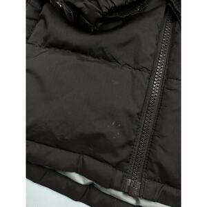 This jacket features a stylish brown color and a convenient zip-up front. It's a girls size large (12 on The North Face size chart). While in good used condition, there are a few small white marks on the front, adding to its unique vintage charm.