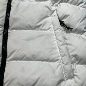 The North Face women's size extra small white Nuptse 700 down fill puffer vest. Great looking vest! I ship fast and package securely for safe delivery!