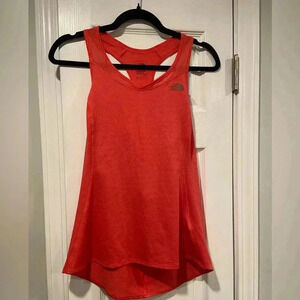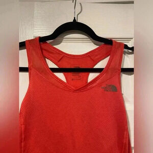 The North Face Orange Athletic Racerback Tank Top Lace Back Logo Size Small