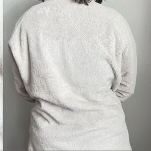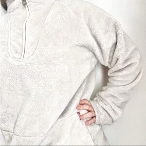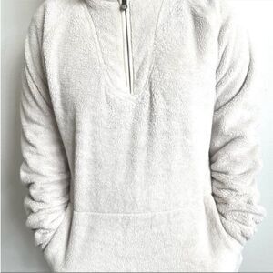 Cozy cream white fleece pullover with a quarter-zip design. Perfect for layering.