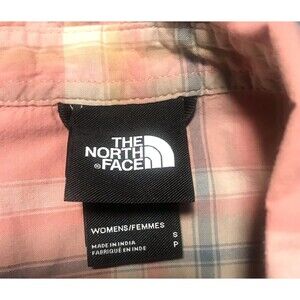 The North Face Pacific Plaid Button Down Shirt Women Small Long Sleev Peach Logo