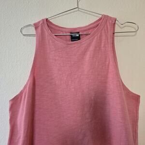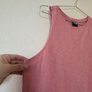 Soft and lightweight The North Face peach sleeveless tank top crafted from 100% cotton. Features a relaxed fit, round neckline, side slit detail, and center back seam for added style. Perfect for layering, workouts, or laid-back summer days.