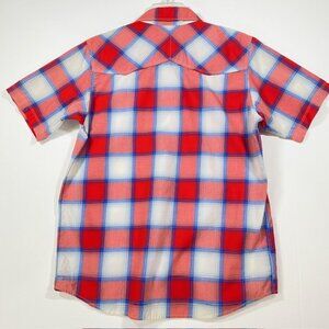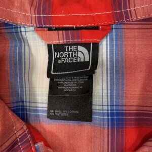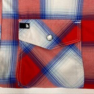 The North Face Pearl Snap Button Shirt Men's Small Plaid Red & Blue Short Sleeve