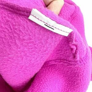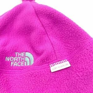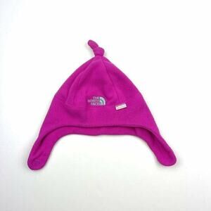 The North Face pink fleece winter hat. Size tag was removed but looks to be baby sizing, please reference measurement photos for sizing questions