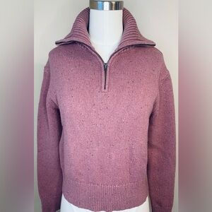 Cozy pink sweater with a half-zip design. Perfect for casual wear.